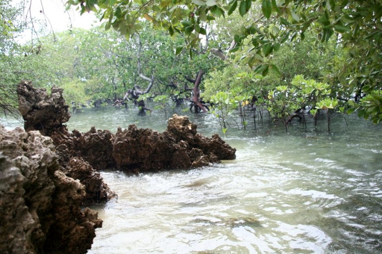 Cette île servait jadis de relais aux marchands d’esclaves, mais la nature a repris ses droits depuis et englouti la plupart des anciennes constructions faites de sables de corail et de terre, excellent engrais pour les arbres.